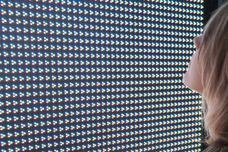 A white LEDS digital display panel is hung on an internal wall of the gallery Contexts. Flickering, unstable letters appear, are replaced by others, then fade out only to reappear in a different order. Sometimes, a word seems about to appear, but the movement stops and it disappears again, leaving space for a new search, a new meaning, a new word to write.